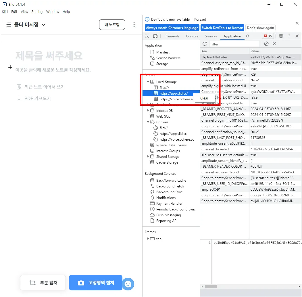 https://app.slid.cc 마우스 우클릭 후 Clear