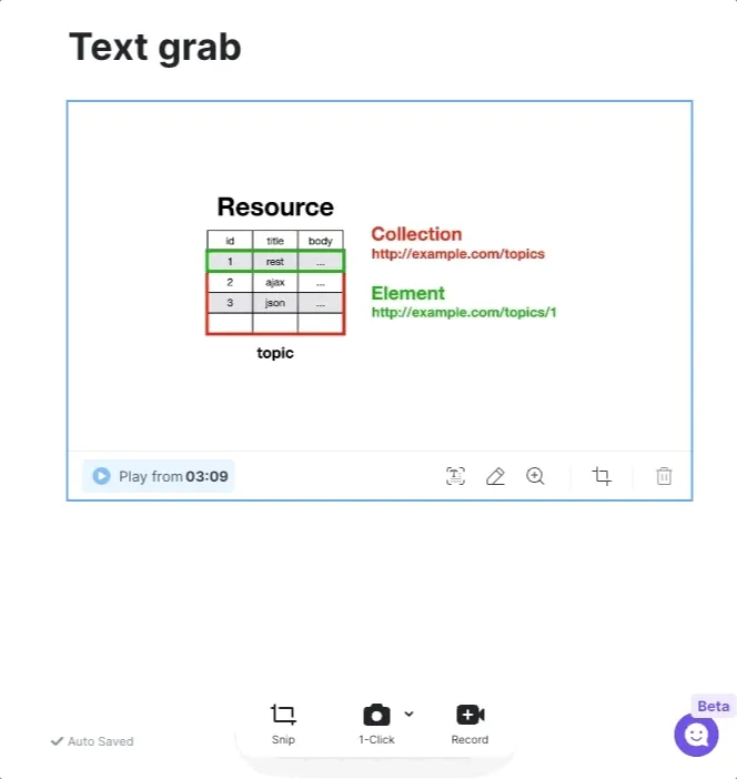 Snip capture the part where the text you want to grab, and click Text grab button to extract only the text you need.