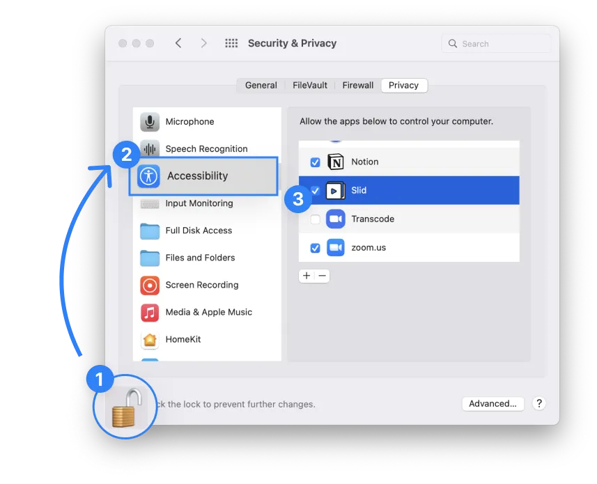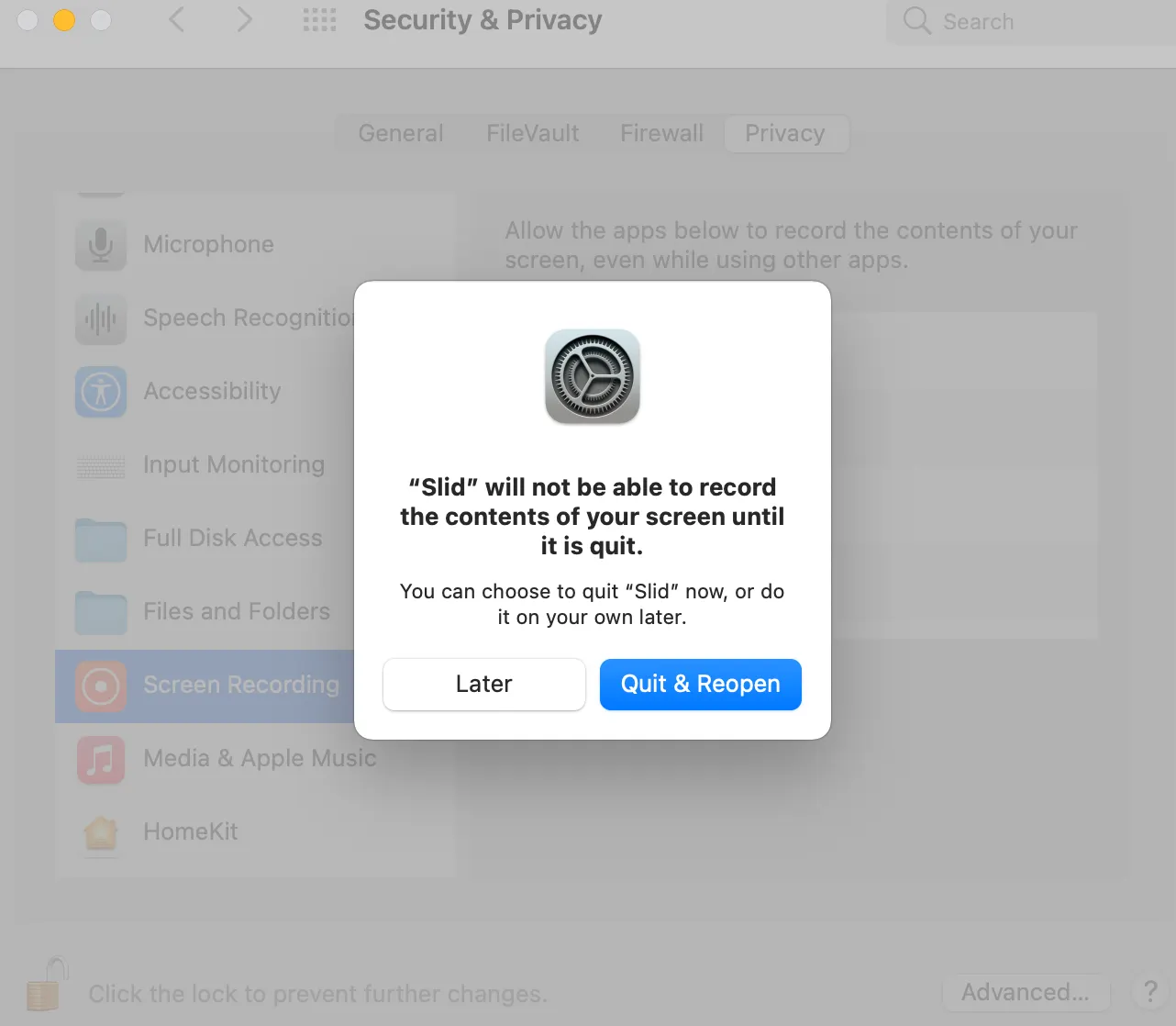 To use Slid desktop in Mac OS, you need to give 1 permission to Slid.