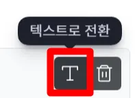 텍스트 블록 오른쪽 위 텍스트로 전환 버튼 클릭