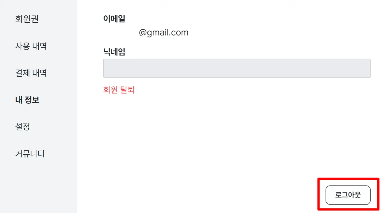로그아웃 클릭