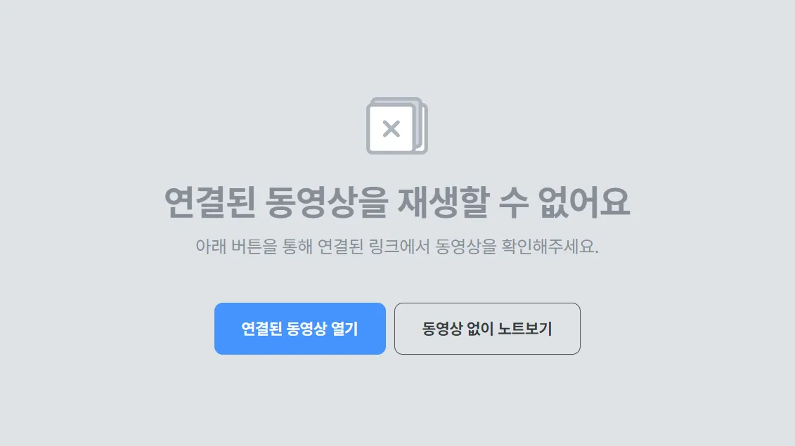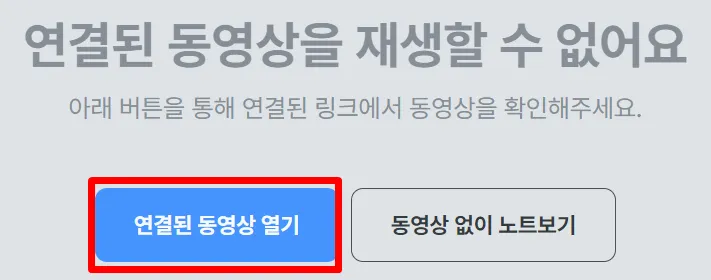 “노트를 링크로 공유했는데, 연결된 동영상을 사용할 수 없다면서 옆에 영상이 나오지 않아요.”