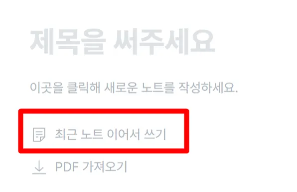 최근 노트 이어서 쓰기로 사용할 수 있어요.