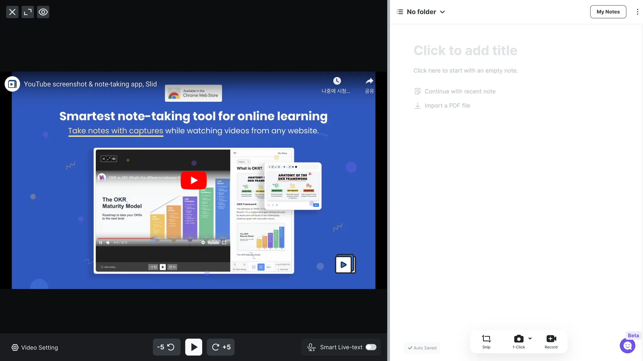 A blue triangle will appear on the video where you can capture with Slid. Click the video you want to take capture.