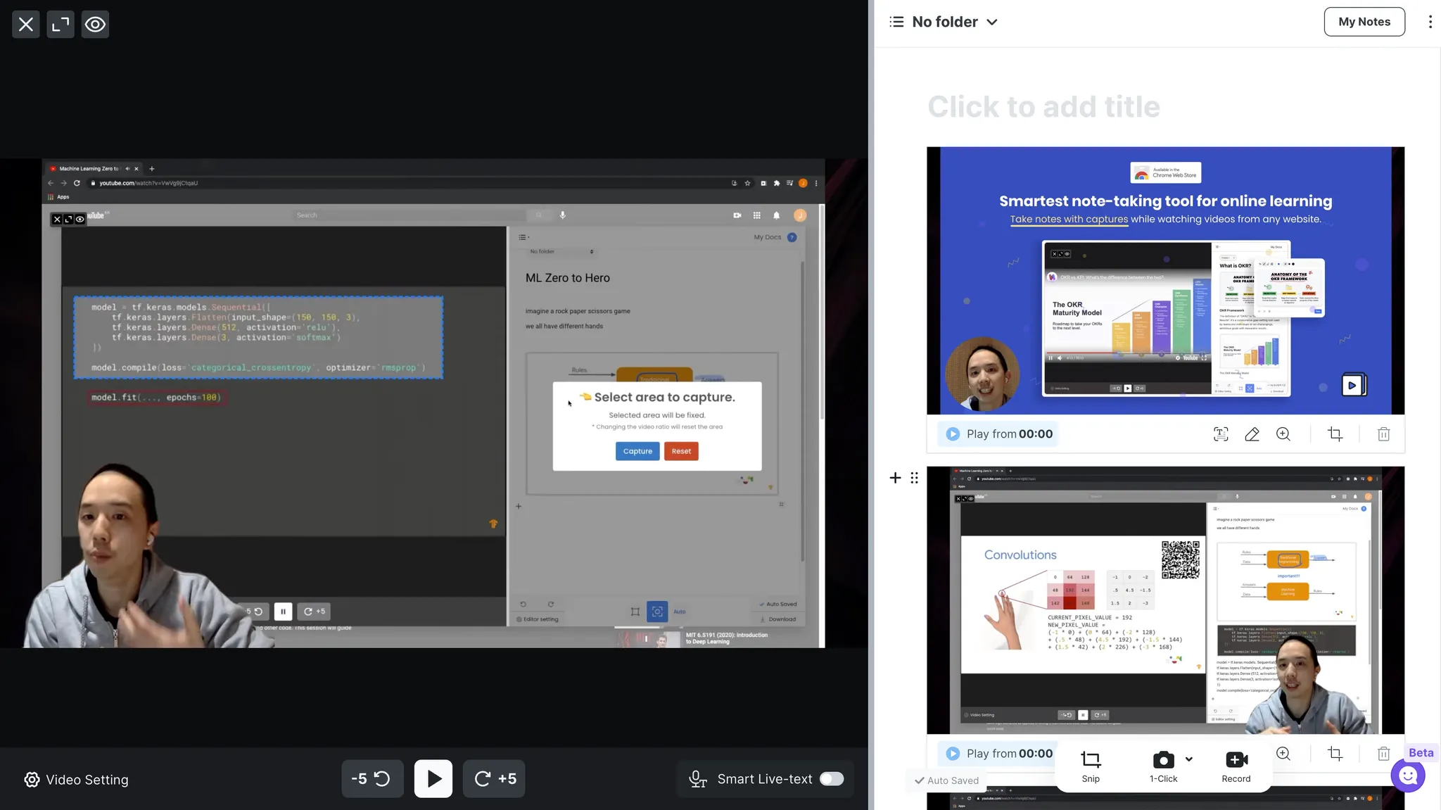 If you want higher resolution capture image, try full screen mode or adjust split screen size with the grey line between the note and video.