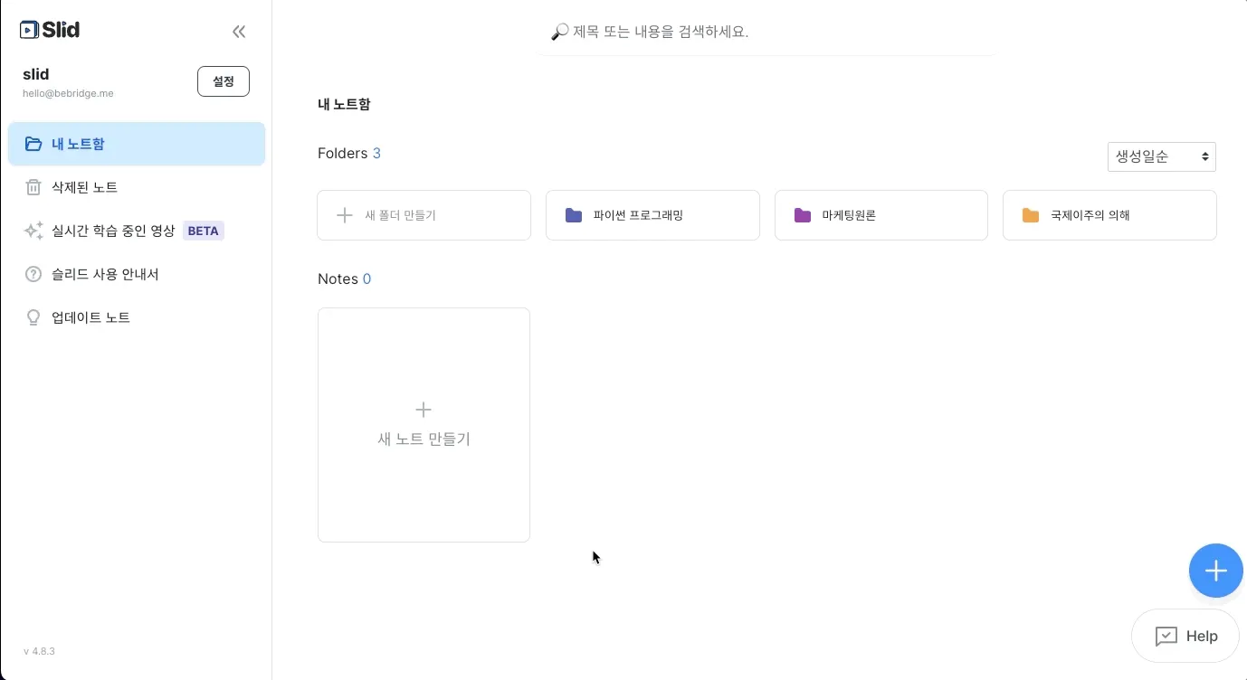 해당 기능은 슬리드 웹 버전에서만 이용이 가능합니다. (데스크톱에서 이용 불가)