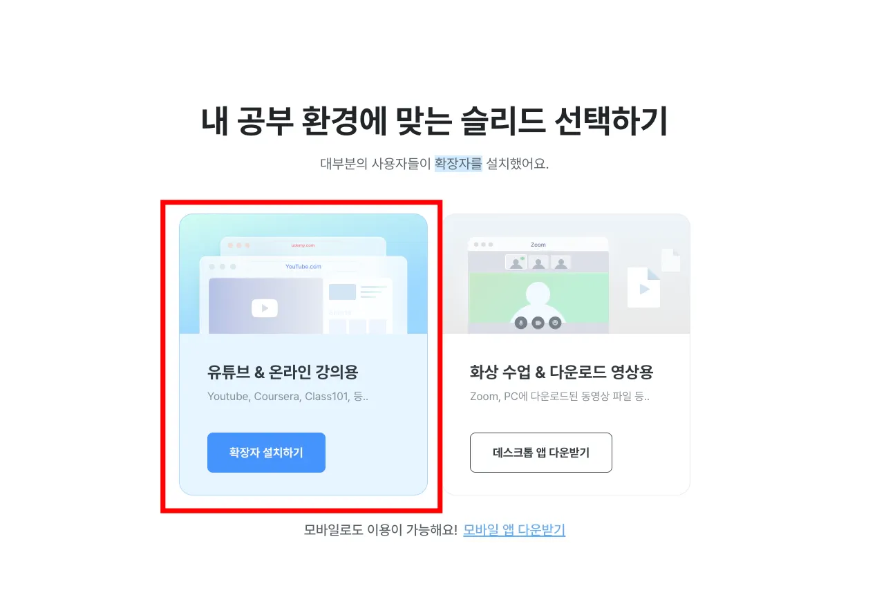 유튜브, 인강 사이트 등 인터넷 영상을 주로 필기한다면 확장 프로그램 슬리드를 선택하세요.
