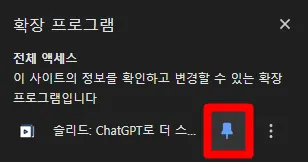 주소창 오른쪽 위에 있는 퍼즐 모양 확장 프로그램 버튼 클릭