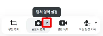 원클릭 캡처 우측 캡처 영역 설정 버튼 클릭