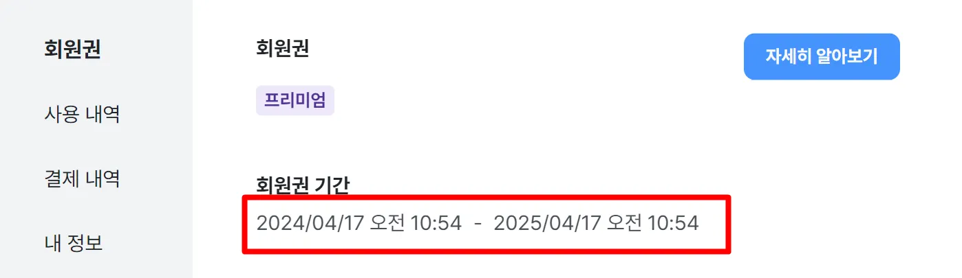쿠폰 적용 기간은 설정의 회원권 기간에서 확인할 수 있어요.