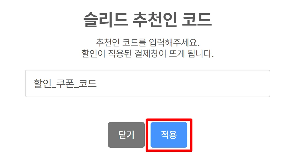 강의, 행사 등에서 슬리드 쿠폰 코드를 받은 경우 사용 방법을 알려드려요.