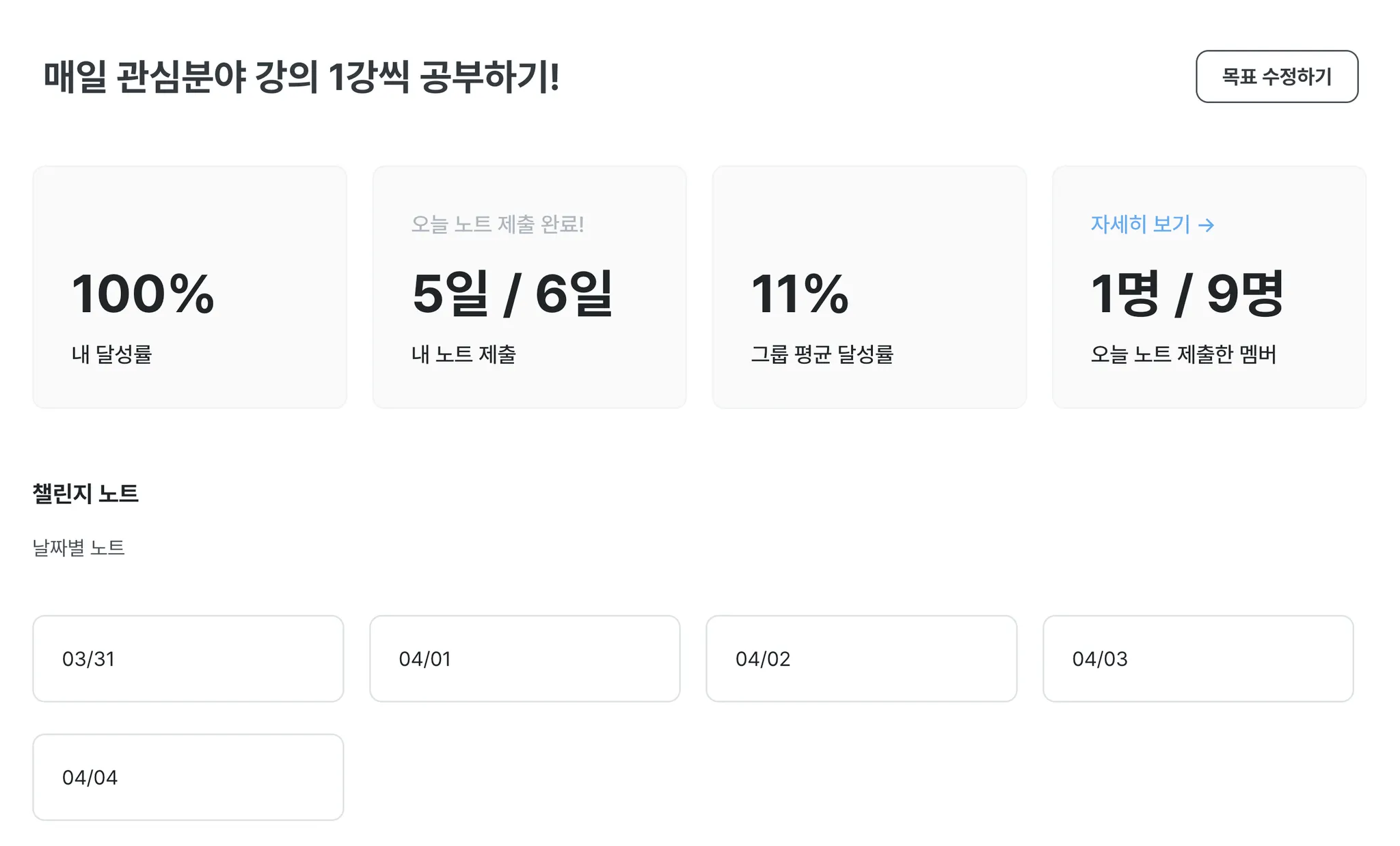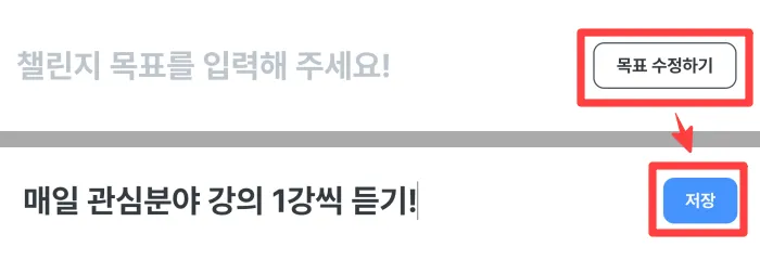 상단의 목표 수정하기 버튼으로 표시되는 목표를 수정할 수 있어요.