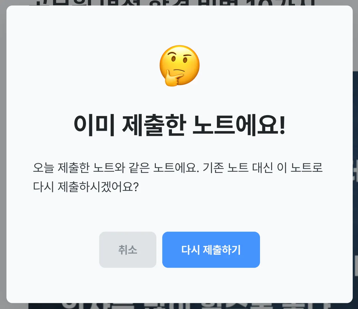 다시 제출하기 버튼을 누르면 기존 노트 내용을 업데이트할 수 있어요.