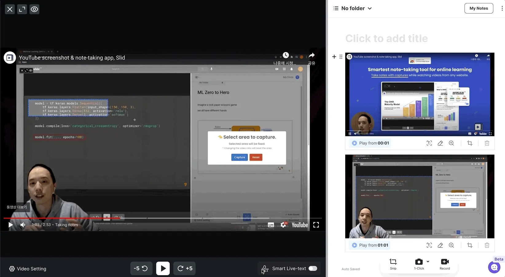 Click and drag a gray line seperating video and note to adjust split screen ratio.