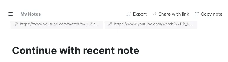 Open Slid note from a new video page you want to capture. Click Continue with recent note button on note screen.
