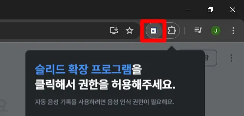 주소창 옆 슬리드 아이콘 클릭
