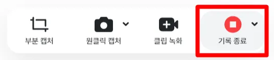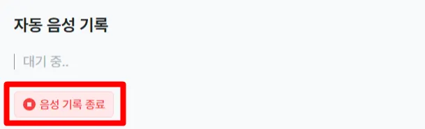 음성기록 블록 내의 음성 기록 종료 버튼이나, 기록 종료 버튼으로 종료할 수 있어요.
