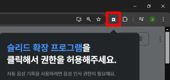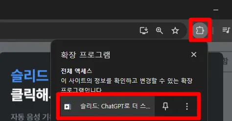 슬리드 아이콘이 없는 경우, 확장 프로그램 (퍼즐모양 버튼)을 클릭