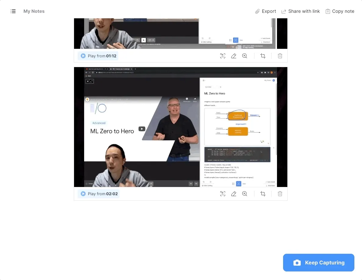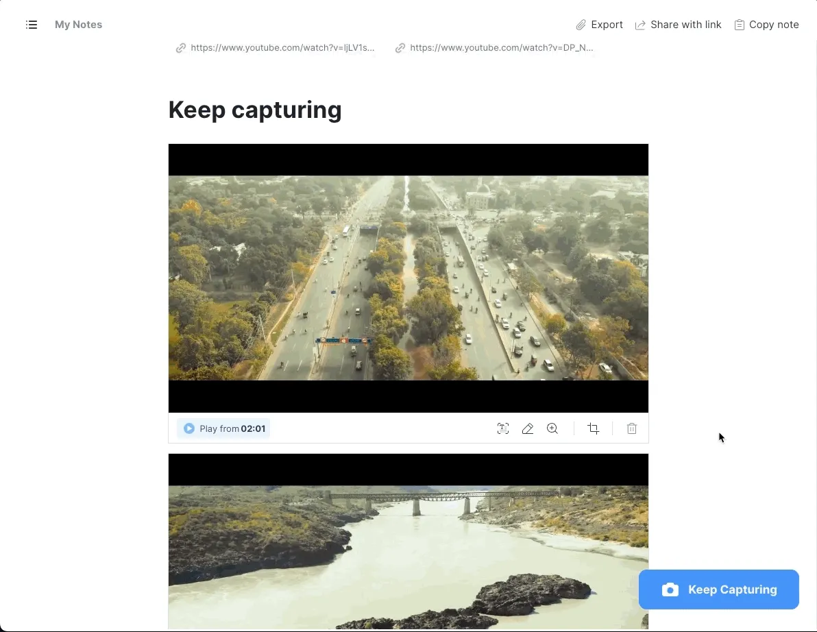 In desktop app, it opens note screen only. Please open original video manually when using Keep capturing feature on Slid desktop app.
