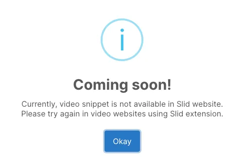 To use all the features of Slid, load note with Continue with recent note feature in webpage where original video is.