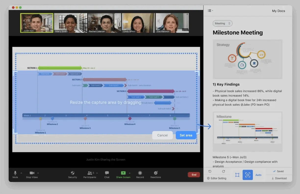 If you want higher resolution capture image, try full screen mode or adjust split screen size with the grey line between the note and video.
