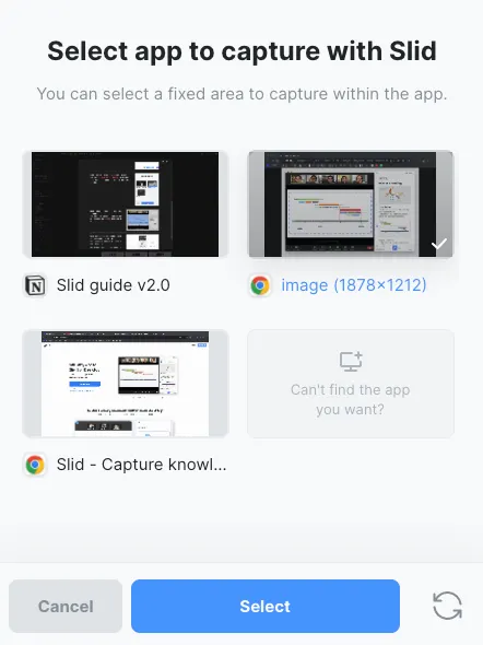 The window should be opened in your current screen. If the window is minimized or on different desktop screen, Slid might not detect the window.
